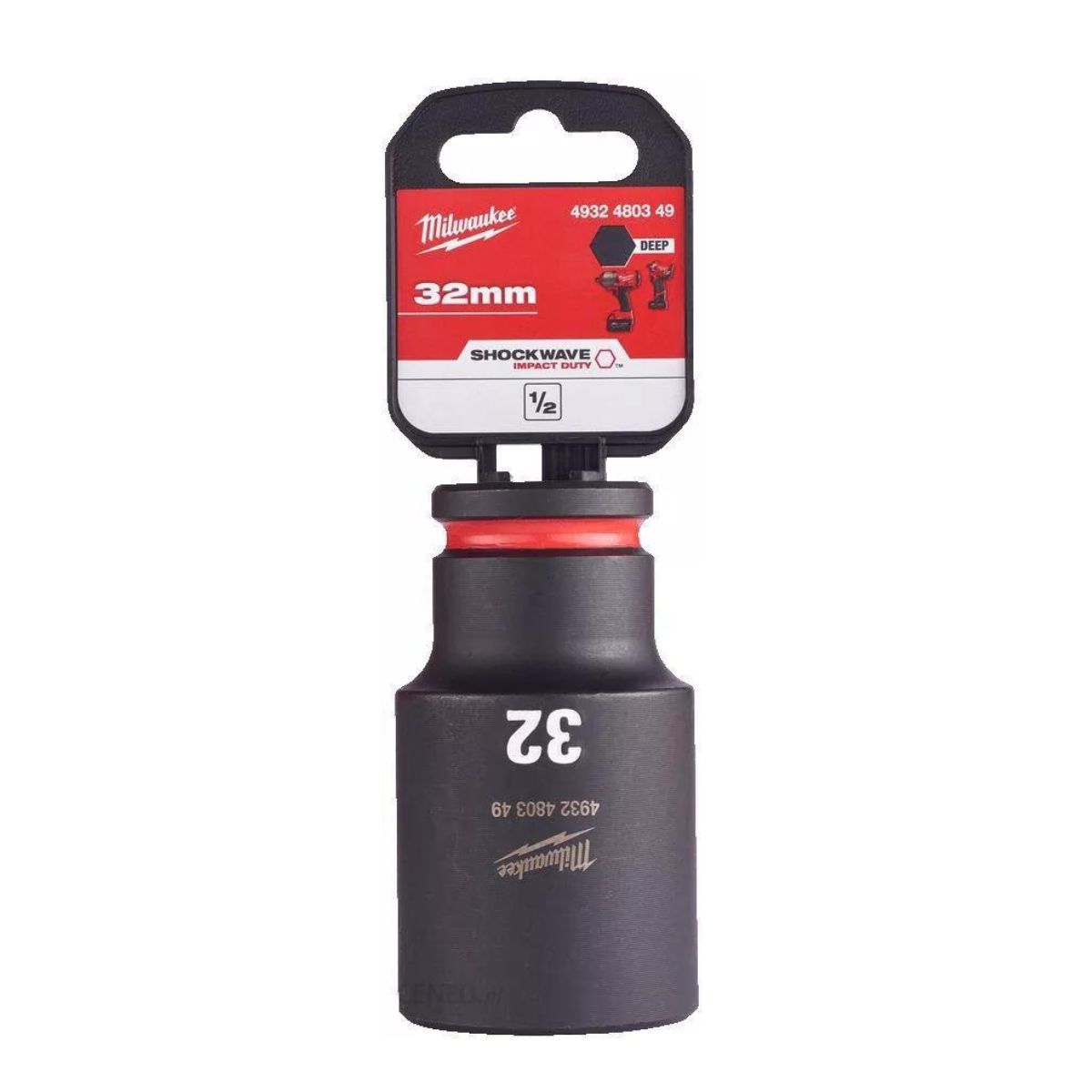 Ударна вложка Milwaukee 4932480349 SHOCKWAVE ™ IMPACT DUTY  е от висококачествена легирана стомана, която осигурява изключителна здравина и издръжливост. Предлага най-добро прилягане, благодарение на 6 точки за захващане и неплъзгащата се шестнадесетична геометрия, предотвратяваща закръгляването на гнездото и закопчалката.  Лазерно гравирани маркировки на размера за лесна идентификация и не се износват. Дълбочината на стената е 32мм, което осигурява свободно място за стърчащи болтове. Дизайн с двоен отвор и жлеб за аксесоари за сигурност.