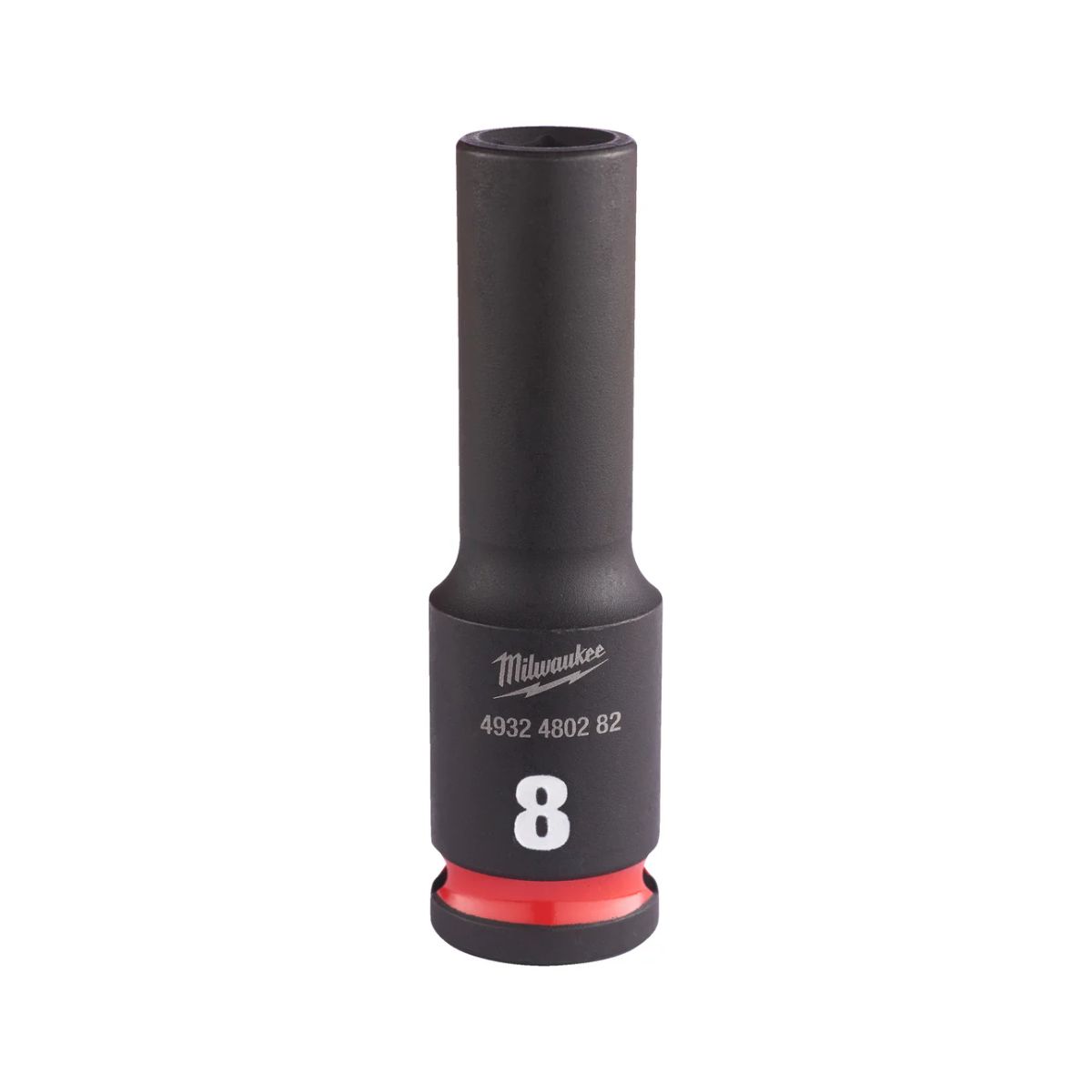 Ударна вложка Milwaukee 4932480282 SHOCKWAVE ™ IMPACT DUTY е от висококачествена легирана стомана, която осигурява изключителна здравина и издръжливост. Предлага най-добро прилягане и предотвратя закръгляването на гнездото и закопчалката. Лазерно гравирани маркировки на размера за лесна идентификация и не се износват. Дълбочината на стената е 8мм, което осигурява свободно място за стърчащи болтове. Дизайн с двоен отвор и жлеб за аксесоари за сигурност.