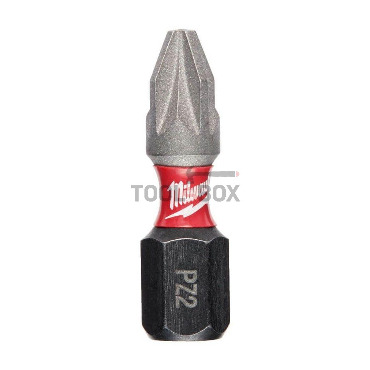 Ударните битове Milwaukee 4932479857 са част от гамата SHOCKWAVE ™ Impact Duty, предназначена за използване с ударни гайковерти, са подходящи за взискателни приложения при тежки натоварвания, но също така предоставят цялостно решение за всички потребители, които трябва да пробиват и завинтват едновременно. Комбинацията от формата SHOCKZONE ™ и специалната термична обработка абсорбира ударите и позволява усукване на пружината по време на работа. Коването под налягане на накрайника дава най-добри резултати при завинтване, намалява възможността накрайника да изскочи или изплъзне от зацепването и удължава експлоатационния му живот. Включва 25 броя битове тип PZ2 с дължина 25 мм, както и 60 мм магнитен държач за битове.
