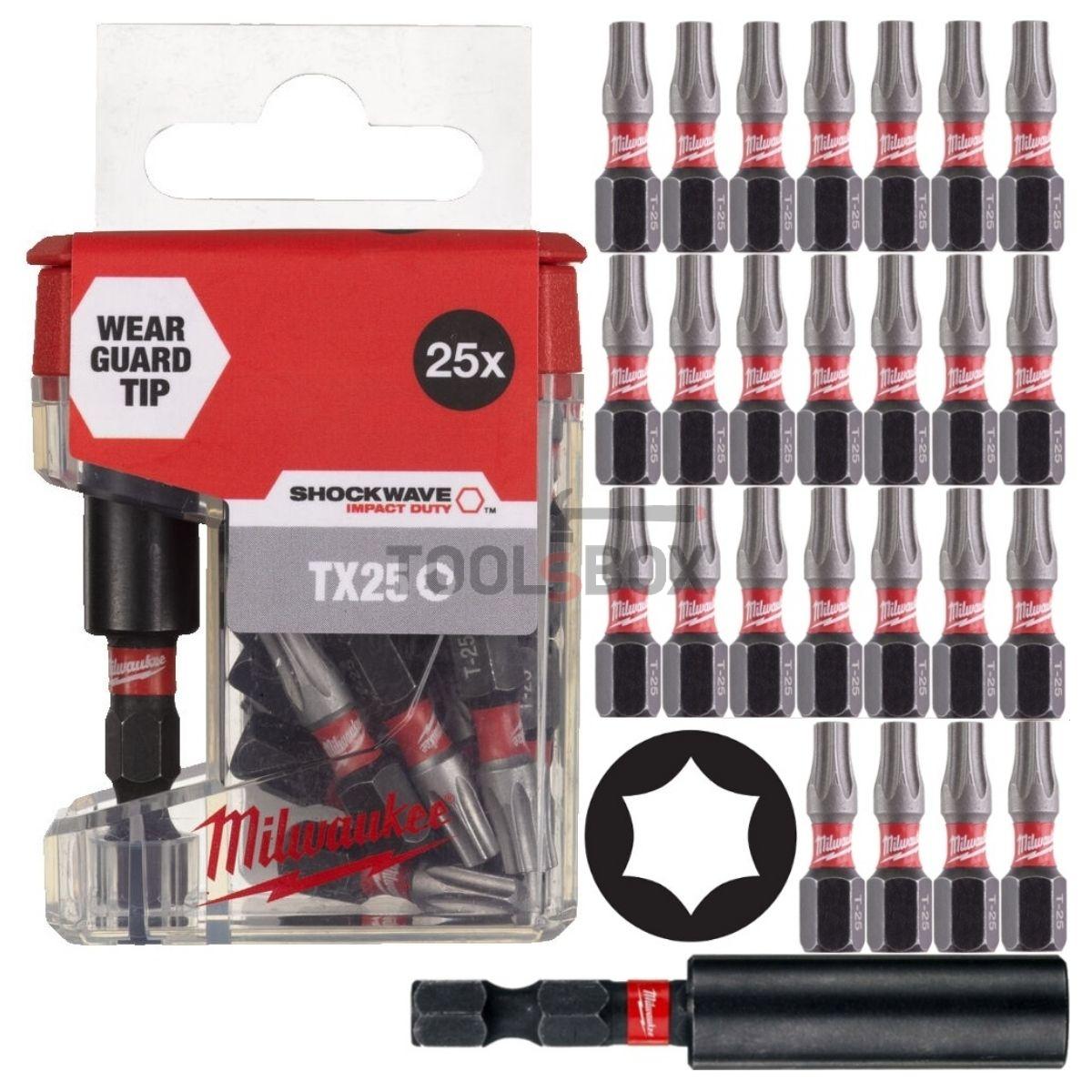 Ударни накрайници с магнитен държач Milwaukee 4932479858, TX25 х 25 мм, 25 броя