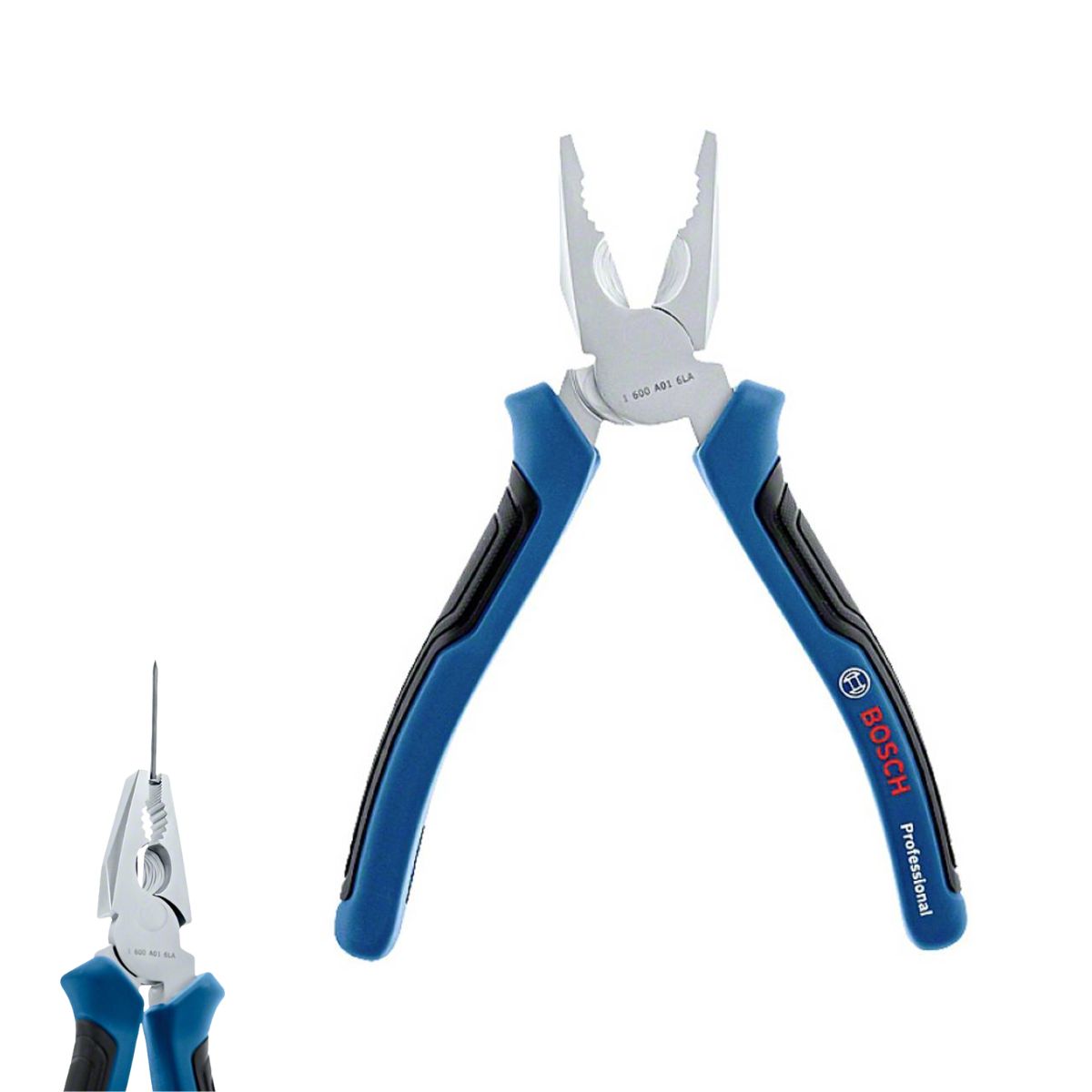Универсални клещи Bosch 1600A01TH7 са изработени от индукционно закалена хром-ванадиева стомана и имат дължина 190 мм. Назъбените им краища гарантират сигурен захват, без приплъзване, а рязането на кабели се осъществява много по-лесно, благодарение на заострените резци. Висококачественото покритие на клещите ще ги предпази от корозия, което ще ви гарантира дълъг период на използване. Меката дръжка осигурява по-малко умора и максимален контрол по време на работа.