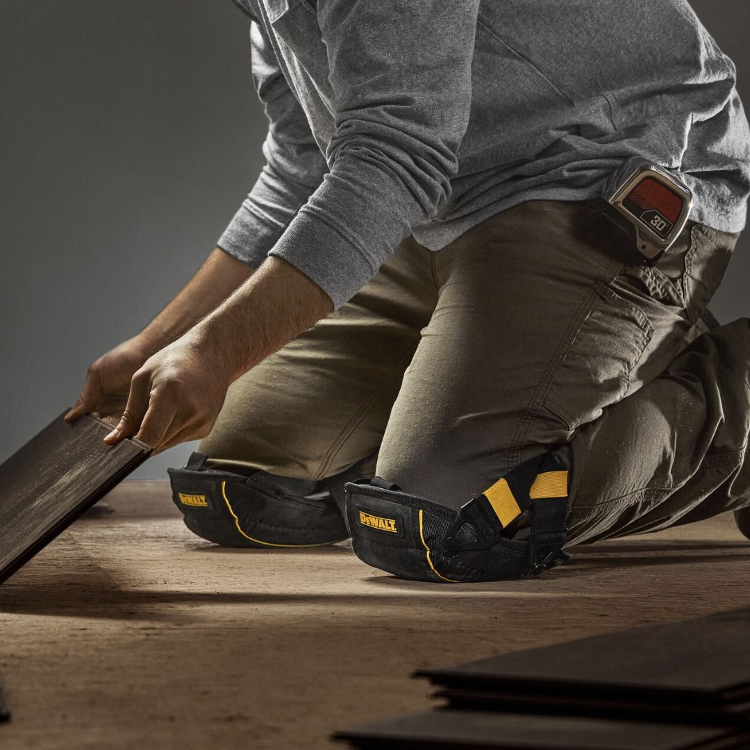 Универсални наколенки Dewalt DWST590014 са предназначени за осигуряване на комфорт и защита при продължително коленичене, като са създадени с мисъл за издръжливост и удобство при работа върху твърди повърхности като паркет, плочки и ламинат. Те разполагат с дебел слой пяна с висока плътност и защитна гел зона за максимален комфорт и равномерно разпределение на налягането. Изработени са от здрав плат 1680 дение, който осигурява устойчивост на абразия и дълъг живот. Плоската, ненадраскваща повърхност гарантира стабилност и предотвратява преобръщане по време на работа. За сигурно и удобно прилягане наколенките са оборудвани с двойни еластични презрамки и въртящи се катарами за бързо освобождаване, като предотвратяват прищипване зад коляното.