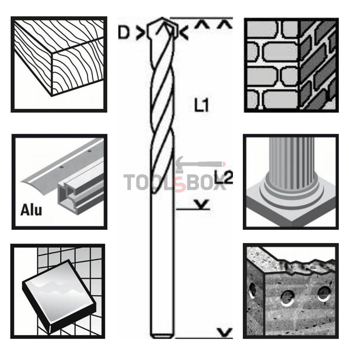 Универсалното свредло CYL-9 осигурява стабилно пробиване в материали като бетон/мек/, зидария, леки строителни материали, многослойни материали, пластмаса, алуминий. Центриращ връх за добро насочване, AWB технология за повече здравина и по-ниски вибрации. Съвместимо за всички кабелни и безкабелни пробивни машини за оптимални резултати при неударно и ударно пробиване.