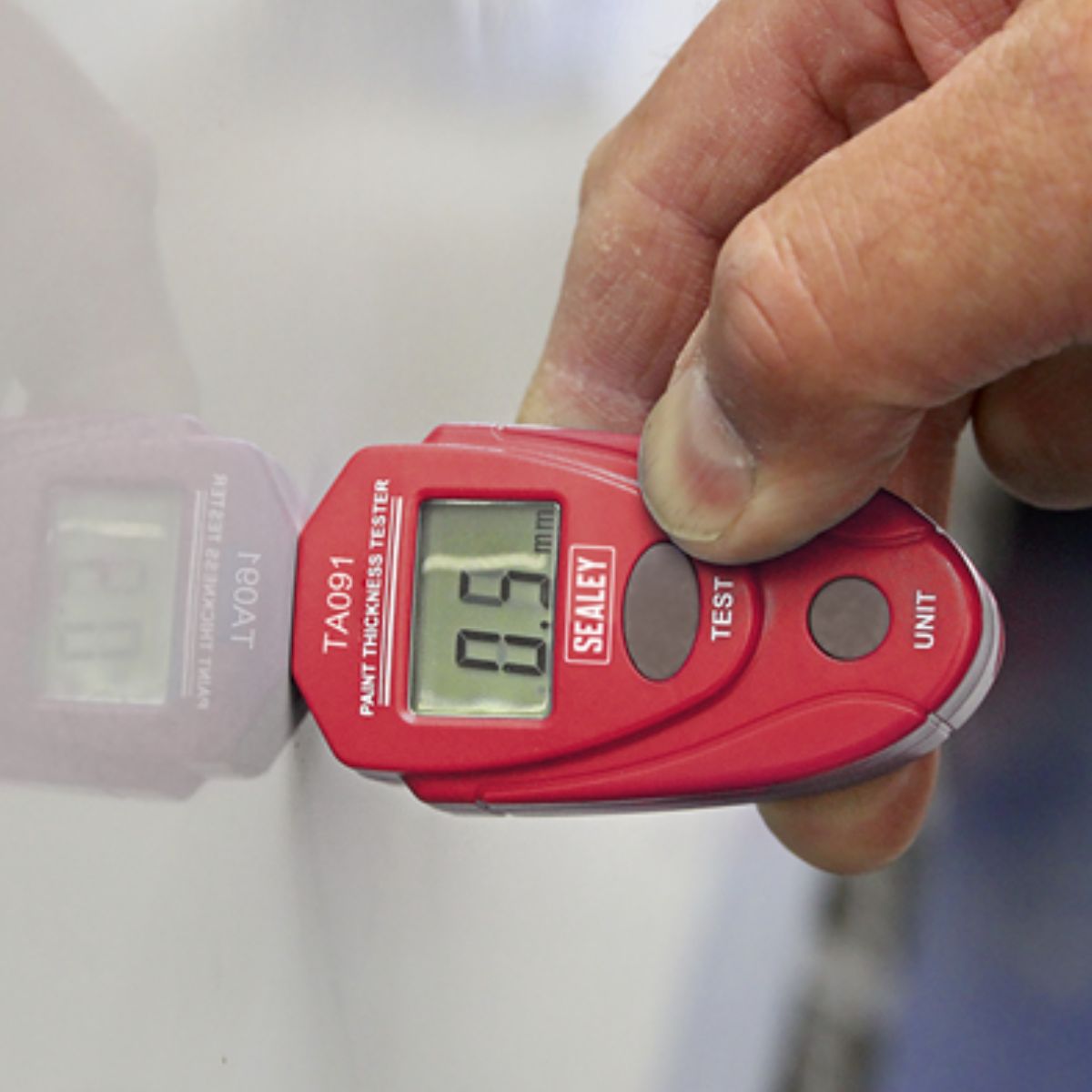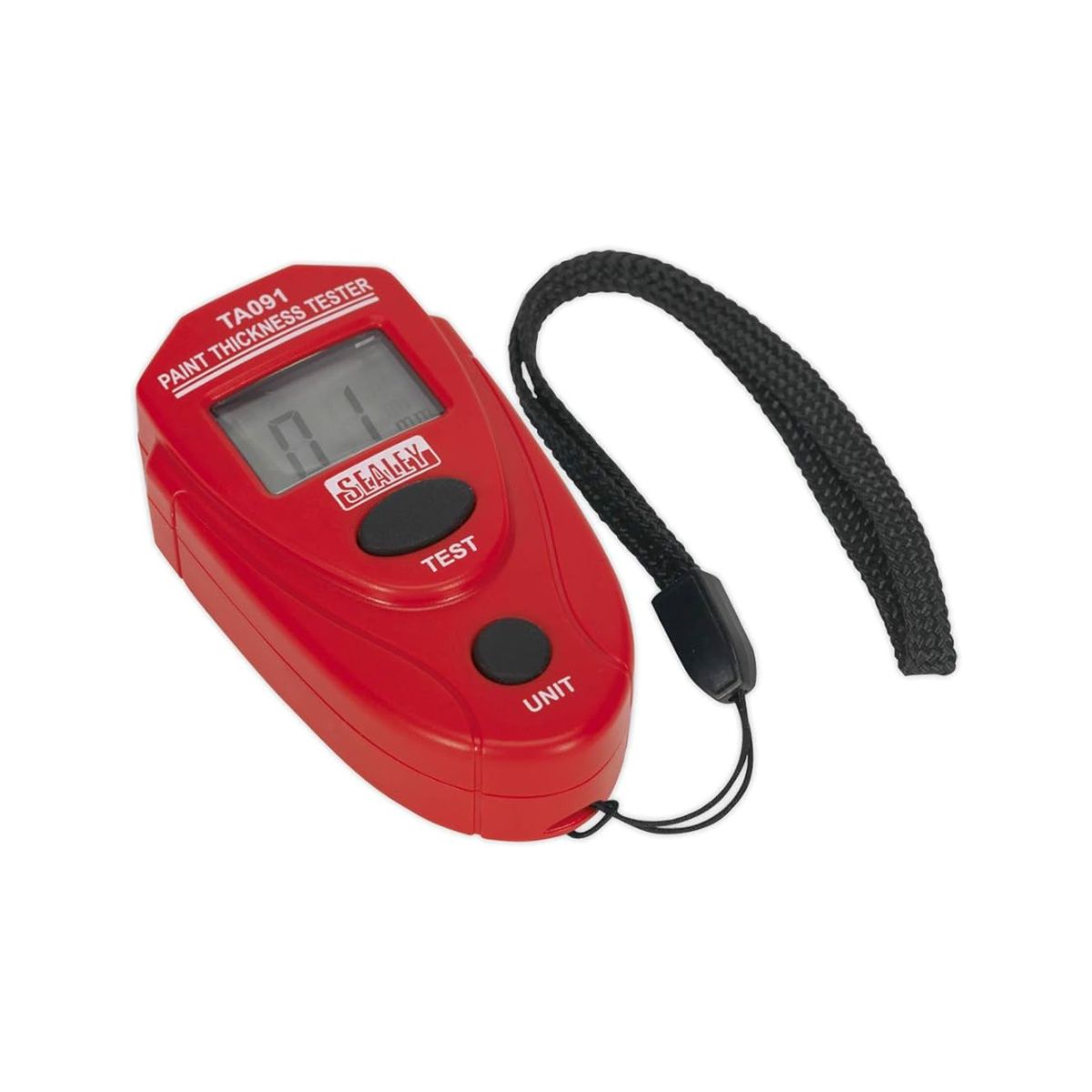 Уред за измерване на дебелината на боята Sealey TA091 е идеален инструмент за шоуруми, сервизи и автосервизи, предоставяйки прецизна проверка на дебелината на боята и оценка на щети при инциденти. Този уред използва технология на магнитна индукция, за да осигури точни и последователни показания до 0,1 mm, което го прави надежден избор за професионална употреба. Sealey TA091 е подходящ за измерване на дебелината на немагнитни покрития върху желязо, стомана и алуминий, включително боя, емайл, пластмаса и епоксидна смола. Измерванията се показват в милиметри, като уредът предлага деления/диапазон от 0,1 мм до 2 мм. Захранва се от батерия CR2032 3V, която е включена в комплекта, осигурявайки дълготрайна и надеждна работа. Sealey TA091 е практичен и лесен за използване инструмент, който гарантира точност и удобство при проверката на дебелината на боята.