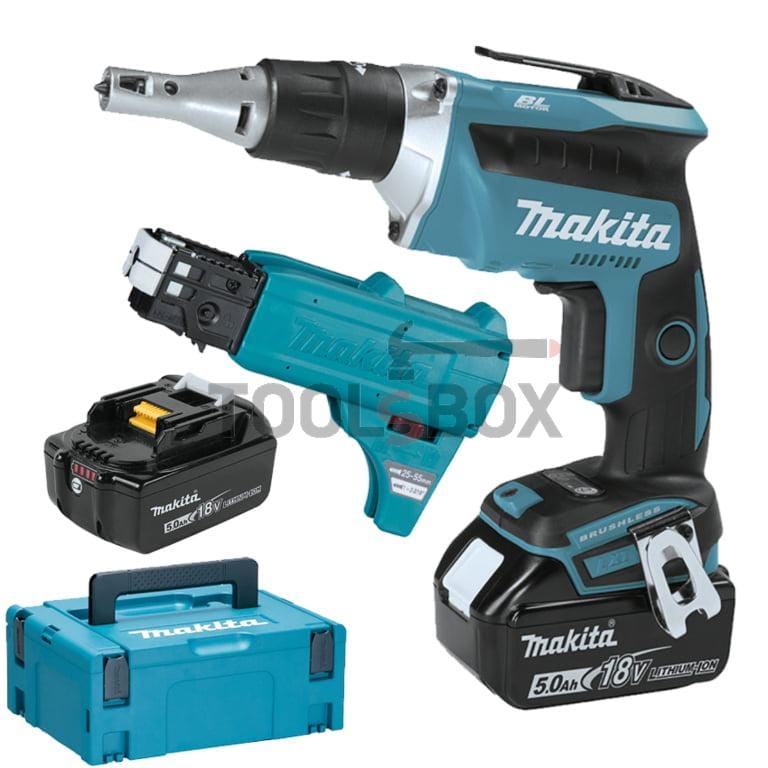 Aкумулаторният безчетков едноскоростен винтоверт DFS452, който допринася за по-добра работа и дълъг експлоатационен живот. Функцията реверс помага бързо да се смени посоката на въртене на битовете и лесно да се отстрани свредлото от дупката. Благодарение на електронното регулиране на оборотите можете да настроите оптималния режим за определен вид материал. Моделът е отличен избор за тези, които вече имат 18-волтов акумулаторен инструмент Makita. Доставя се в куфар с 2 батерии, приставка за серийно завинтване 199146-8, зарядно устройство и 2 удължени бита PH2. Винтоверт за гипскартон