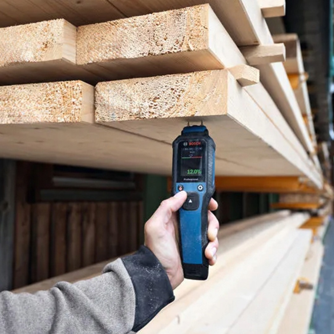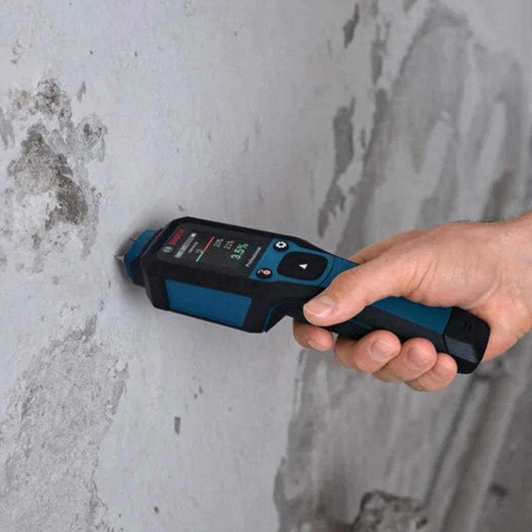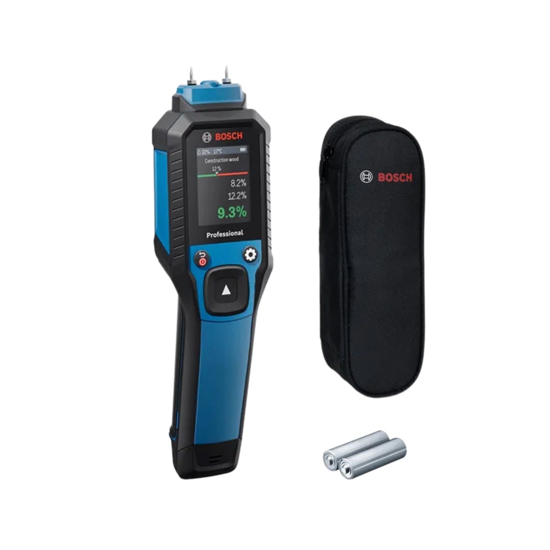 Влагомер Bosch GMP 2-15 разполага с вграден термо-хигрометър за бързи и точни измервания. Измерва влажността в 37 вида дърво и 10 вида строителни материали, като резултатите се показват ясно на цветен LCD дисплей с висок контраст. Уредът има регулируема прагова скала за лесно интерпретиране на стойностите, както и автоматичен автотест за надеждна работа. Здравият корпус с гумено покритие и защита IP65 осигурява издръжливост, а вграденият сензор следи температурата и относителната влажност на околната среда за по-пълни данни.