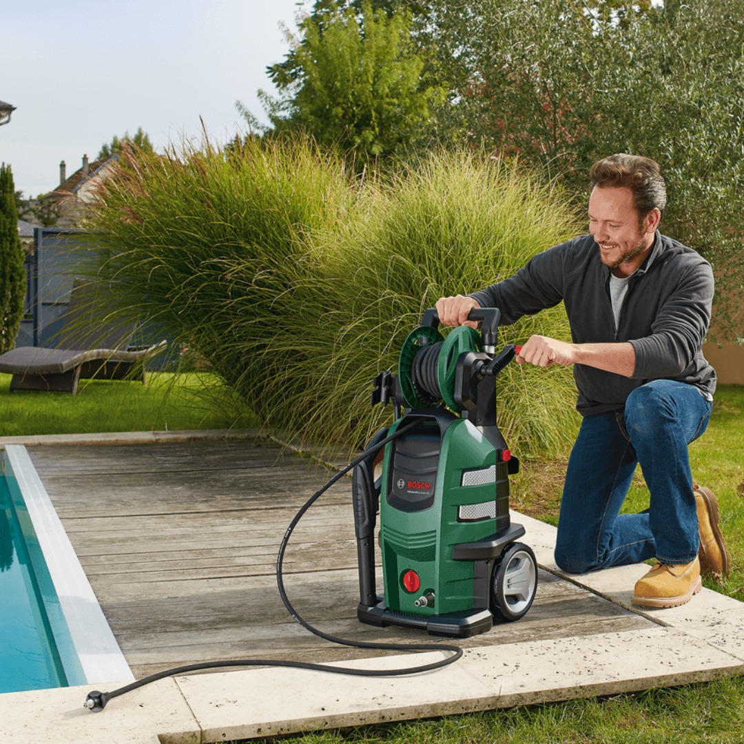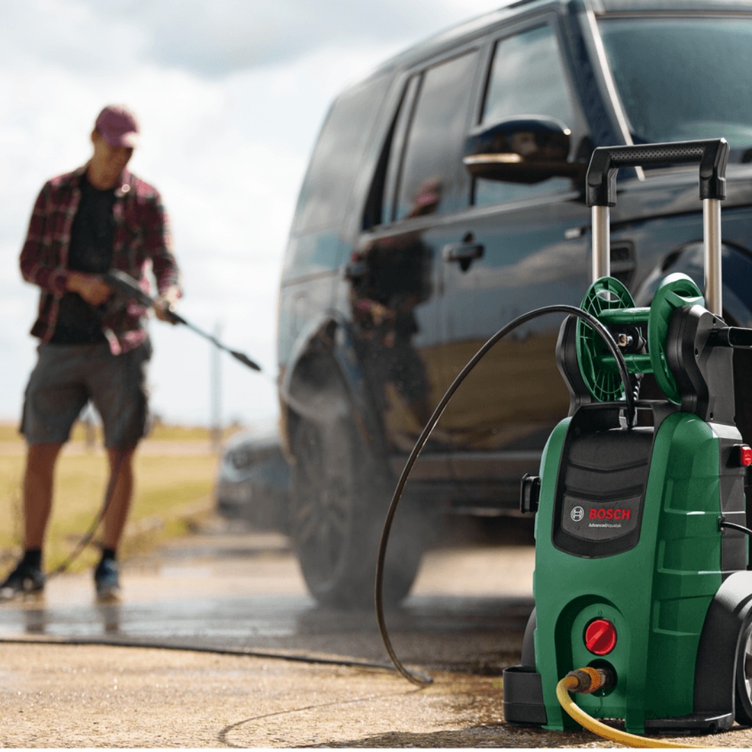 Bosch AdvancedAquatak 160 е електрическа водоструйка, предназначена за интензивно почистване на по-големи площи и по-трудни замърсявания около дома. Моделът използва Quad помпена технология с допълнителен цилиндър, което подпомага поддържането на висока ефективност при работа върху тераси, алеи, стени, големи превозни средства, басейни и лодки. Конструкцията е проектирана за удобно преместване и лесна подготовка за работа, като включва телескопична дръжка, големи колела и барабан за маркуча под високо налягане.