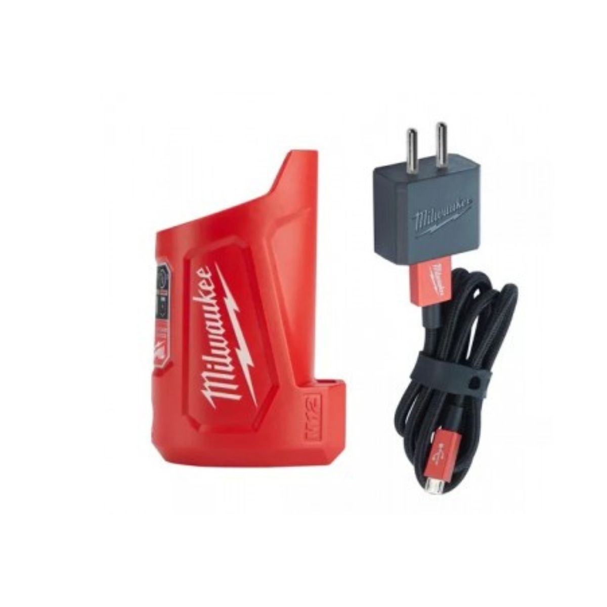 Зарядно устройство Milwaukee M12TC изключително удобно и компактно, зареждащо всички всички M12 ™ батерии. Зарежда електронни устройства чрез 2.1A USB изход. Разполага с USB стенна розетка и кабел с дължина 90см.Захранва всички задвижвани съоръжения MILWAUKEE® REDLITHIUM ™ -ION 1.5 Ah / 2.0 Ah / 3.0 Ah батерии се презареждат за 2 часа. / 2,5 часа / 4 часа